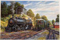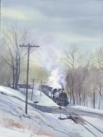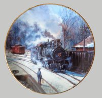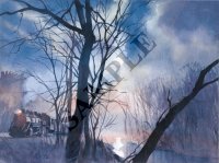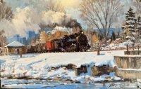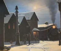 ![]() | East Broad Top | Xaras, Ted | 1995 | #14 headed north light at south end of Rockhill yard | Used as image on collector plate as part of "Winter Rails" plate collection by The Hamilton Collection. | ||