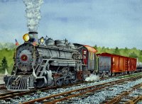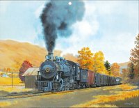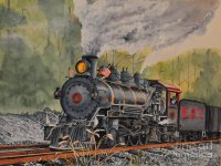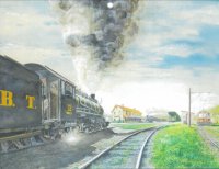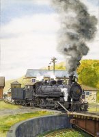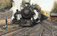 ![]() | Leaving Robertsdale, Pennsylvania | Coker, John | 2004 | Friends of the East Broad Top | #17 southbound at Robersdale water tank | 2004 FEBT Fundraiser | |
