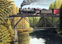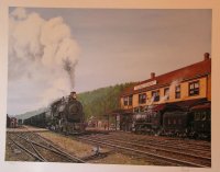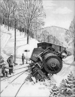![]() | Steam in the Fall | (unknown) | #16 with excursion train northbound at Douglas Summit | Web Link | Appears to be computer generated conversion of Matthew Malkowicz photo. | ||